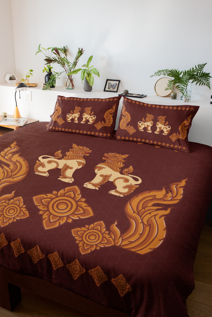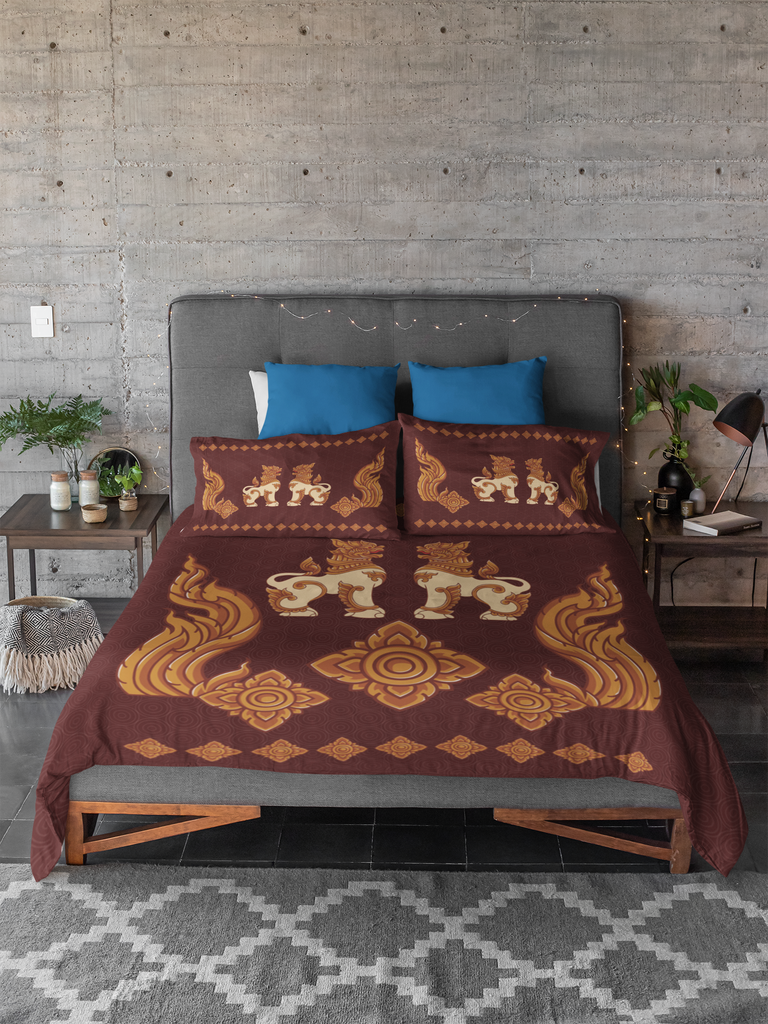 Myanmar Lion with Kanote brown Microfiber Duvet Cover