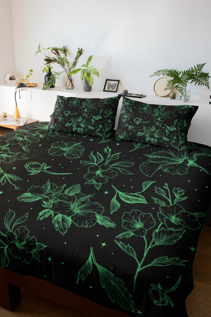 Cottagecore neon green leaves Microfiber Duvet Cover
